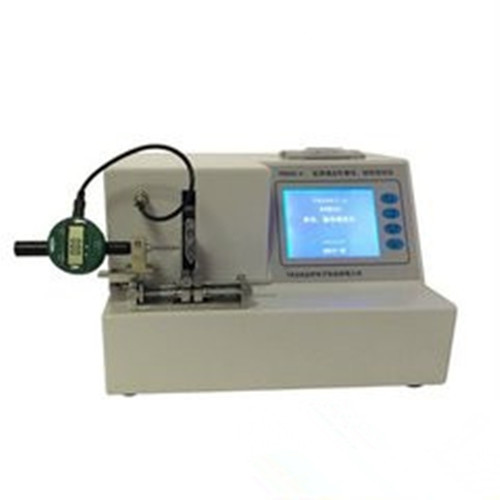 带线缝合针弹性韧性测试仪特征:采用5.7英寸(120×90)单彩液晶显示屏,中文菜单显示。公称规格、试验变形量、试验项目、打印、测试、上行、下行、时间、标定。由键盘控制液晶显示屏上的菜单,自动控制变形量,机载打印测试数据,弹性、韧性测试夹具更换方便,弹性测试自动完成。